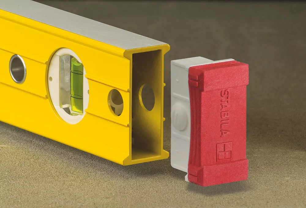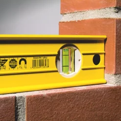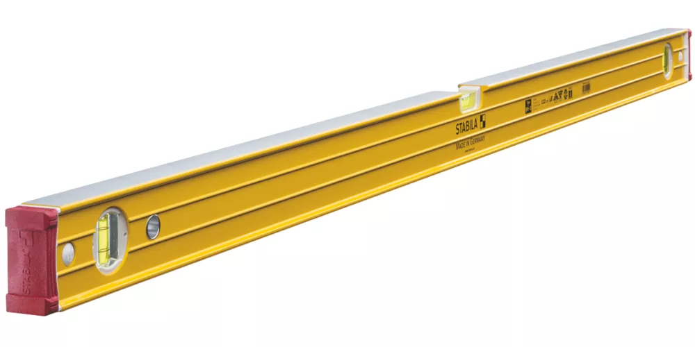 47″ (1200mm). Ultra-rigid aluminium profile with ribs that reinforce the strength. The vial, the block holder and the measuring surfaces are adjusted and aligned precisely to one another. With 3 vials; one horizontal and 2 plumb. Capable of measuring in normal and reverse positions. Removable shock-absorbing end caps with anti slip grips, enables level to work right into corners. With anti-static and UV-protected vials.