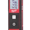 Extremely compact laser distance measurer. With 8 measuring functions: length, area, volume, continuous measurement, Pythagoras with 2 and 3 measuring points and minimum and maximum tracking. Rapid measuring results and easy operation ensure trouble-free work. Large digits and display lighting make the measurer easy to read and operate. Impact-resistant housing with shock-absorbent, soft-grip casing. Integrated target tool (notch and bead principle) allows targets to be located, even at great distances. Supplied with a belt pouch and wrist strap.