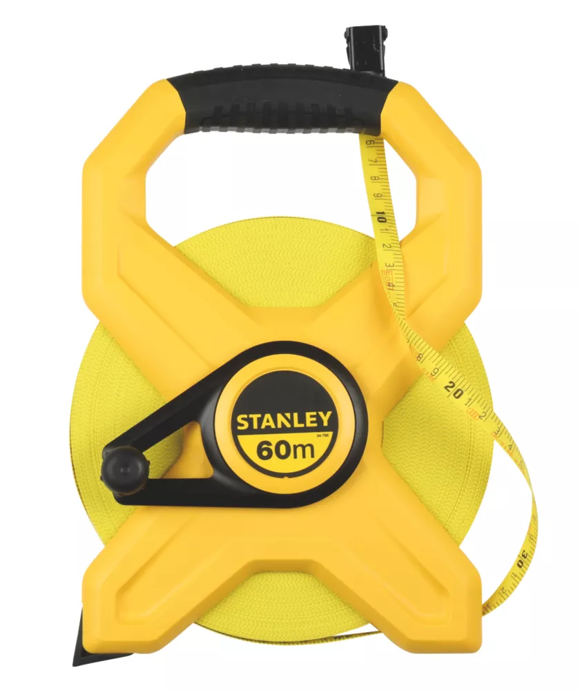 Accurate and durable open reel tape that is easy to clean. Made with reinforced fibreglass to reduce elasticity and improves measuring accuracy. Corrosion-resistant, UV protected and non-conductive with a washable PVC coating for a longer life on site. Easy to read 12mm blade. Features a barbed folding hook with integrated ground spike that helps with one person use. Double-sided showing metric, inches and foot scales for percision. Frame is constructed from an anti-shock ABS plastic to withstand heavy duty use and bi-material handle for comfort.