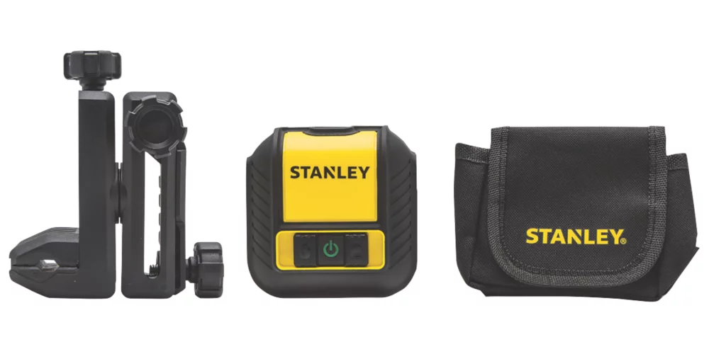 Green beam cross line laser level for DIY and light residential construction jobs. Projects 100° vertical line and horizontal lines. Supplied with locking pendulum, 3-position lock switch and removable quick link bracket. Also features ¼” thread mount for tripod usage and touchpad control panel. Supplied in a belt pouch. IP51 rated.