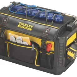 Strong injected polypropylene frame gives the bag a strong and rigid structure. Made from tough 600 denier and ballistic nylon fabric, hardwearing, strong and durable. Multiple internal and external pockets that provide maximum organization and storage space for a variety of tools. The open design of the tote provides easy access to tools and power tools and covered front pockets offer secure storage of small parts or personal items.