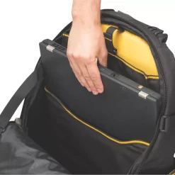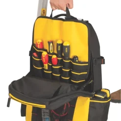 Heavy duty backpack allows tools to be carried securely when commuting is required.