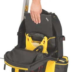 Conveniently combines on wheels and on back carriage depending on requirements, for easy and convenient tool transportation. Extendible handle allows easy carrying of the backpack and thanks to the rigid-form design, the backpack can stand upright in an open position, enabling easy access to all tools. Features a removable divider with multiple pockets for a wide variety of tools, and storage options for a power tool or laptop thanks to a strong separate compartment. The backpack opens from both sides making it more convenient to access tools with less manoeuvring. Perfect for commuting, working at heights or where travelling with tools is required.