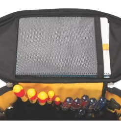 19½” (500mm). Round top tool bag design with a large storage capacity. Made of durable materials and featuring a waterproof polypropylene base. protect tools from damage and wear as well as keep them dry if the bag is left on wet ground. Padded shoulder strap and rubber grip handle make the bag comfortable to carry when loaded with tools. Durable 600 denier fabric and leather construction for longevity.