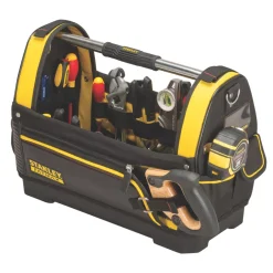 Tote bag allows great access for hand tools. Internal and external pockets allow for easy tool storage. Straps on frame allow levels or saws to be carried.