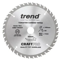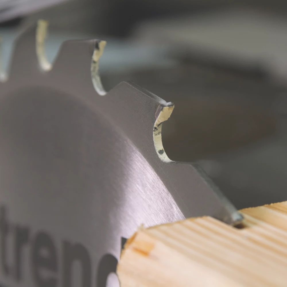 Microgranular tungsten carbide-tipped circular saw blade designed for a professional finish in softwood, hardwood, plywood, soft fibre, plasterboard stone, fibre board, cement bonded board and particle board. Reamed bore to ensure precise fit to spindle. Silverbraze to ensure tip is bonded securely to body.